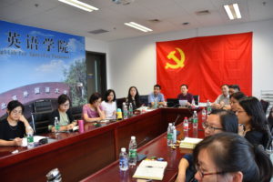9月11日下午1:00,Beat365中文官方网站“双带头人”教师党支部在国际大厦1016启动本学期系列主题教育活动。“双带头人”工作室负责人李莉文、仵胜奇、蔡鸿和全体党员共计19人参加会议。会议由蔡鸿主持。
