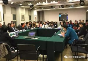 在专题讨论中,华中科技大学都建颖老师所在的团队分享了该校专门用途英语的教学尝试;东京(国立)电气通信大学史杰老师的团队展示了该校情报学专业大学英语课程的设计方法,为ESP如何更好与其他专业结合展开教学提供了范例;重庆大学黄萍老师的团队分享了该校专业交流英语(English for Professional Communication)课程的实践,包括其理据、教与学的材料、教师和学生角色以及测试方式等。