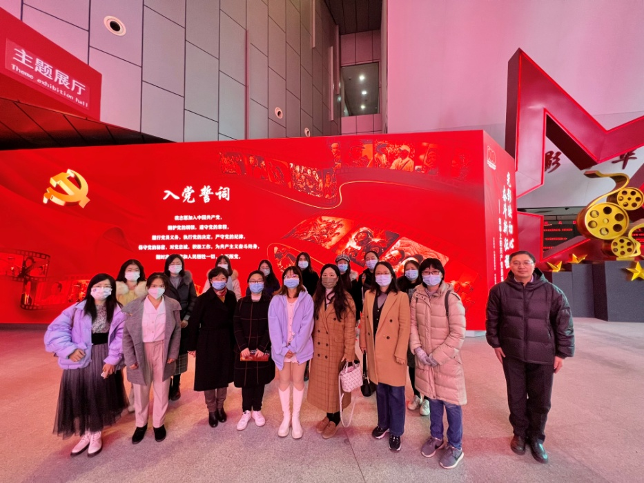 为庆祝中国共产党成立100周年,深入进行党史学习教育,自觉传承红色基因,12月8日下午,Beat365中文官方网站党总支组织教师党支部和学生党支部党员师生前往中国电影博物馆参观学习。