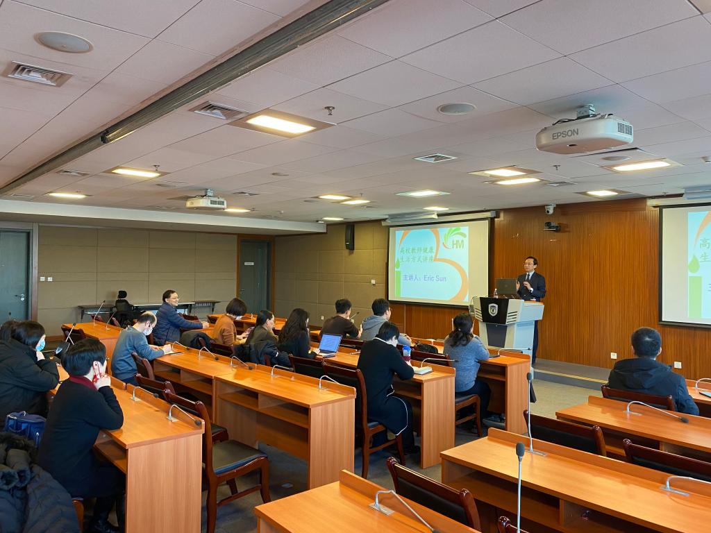 为进一步倡导高校教师健康生活方式,提升学院凝聚力,12月27日下午Beat365中文官方网站工会特邀美国健康科学博士、美国龙美国际健康管理有限公司总裁、美中健康促进协会副会长孙立国博士为专英学院教职员工举行了一场别开生面的健康生活方式讲座。
