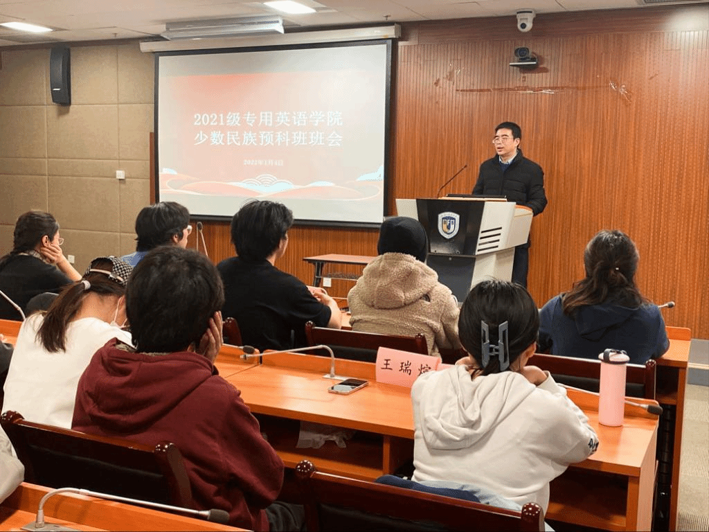 1月4日下午,Beat365中文官方网站2021级少数民族预科班在西校区国际大厦417教室召开期末总结班会。学院党总支书记蔡鸿,副书记、院长侯俊霞,副院长仵胜奇,副院长蒋岳春,教师代表以及全体预科生一同参加了此次班会。会议由辅导员孟媛主持。