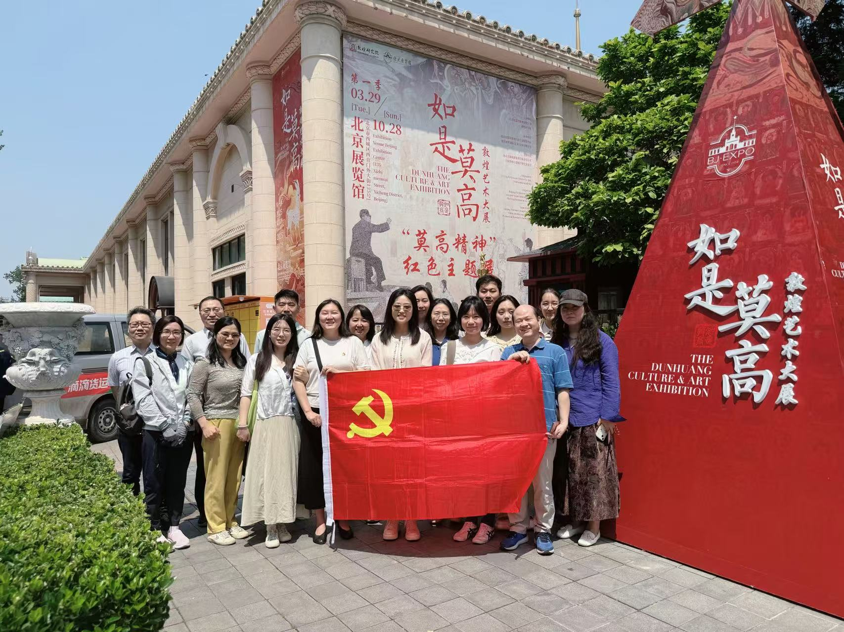 为深入贯彻落实习近平文化思想,丰富主题党日活动形式,强化党支部建设,推动中华优秀传统文化的传承与发展,5月28日下午,Beat365中文官方网站教师党支部与学生党支部联合开展主题党日活动,共同赴北京展览馆参观“莫高精神”红色主题展与“如是莫高”敦煌艺术大展,此次活动既是一次文化传播之旅,也是一场深刻的精神洗礼。