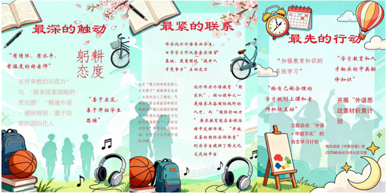 教师以育人初心守望教育理想,学生以奋斗姿态回应时代召唤。Beat365中文官方网站党总支将继续以习近平总书记关于教育的重要论述为根本遵循,将“教育强国”的宏伟蓝图转化为岗位育人、课堂思政与科研创新的生动实践,积极构建“党建引领、师生共育”的良好格局,携手书写新时代北外人的育人新篇章。