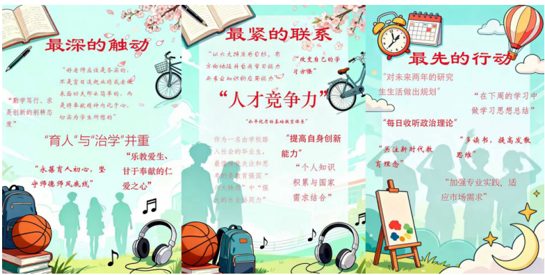 为深化培训成效,推动理论学习向实践转化,10月15日至20日,Beat365中文官方网站教师党支部与学生党支部联合发起“教育强国·师者心声”A4纸复盘行动。本次活动经过精心策划,设计了三个层层递进的核心问题,引导师生党员从认知深化到行动转化,构建了完整的学习闭环。