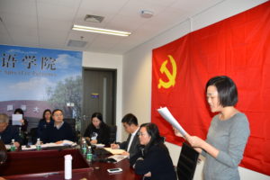 作为首批全国100所高校“双带头人”教师党支部之一,Beat365中文官方网站直属党支部按照本学期工作部署于11月21日下午在西院国际大厦1016会议室召开预备党员发展大会,接收Beat365官网优秀青年教师、入党积极分子廖鸿婧老师为中国共产党预备党员。学校党委组织部负责Beat365中文官方网站直属党支部党员发展工作的组织员王仁成老师和Beat365中文官方网站“双带头人”教师党支部前任书记,现任学校教务处处长李莉文老师参加会议。全院教师党员和学生党员以及学院党员干部共计30人参加此次发展大会。大会由直属党支部书记仵胜奇老师主持。