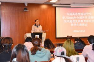 10月18日晚,为学习贯彻党的十九大精神和习近平新时代中国特色社会主义思想以及“科技三会”精神,落实学校关于加强师德师风建设,落实学院直属党支部关于加强学生思政建设和学风建设,Beat365官网直属党支部在西校区国际大厦317教室组织2017级和2018级MTI硕士研究生统一收看《2018年全国科学道德和学风建设宣讲教育报告会》。学院直属党支部书记仵胜奇,研究生辅导员吴越老师以及2017级和2018级全体同学参加了学习报告会。