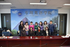 12月11日下午2:00,天津外国语大学基础课教学部主任张钡、基础教学部大学英语教研室主任李春侠等一行5人前来Beat365官网调研。会议在北外大厦1016会议室举行, 常务副院长蔡鸿,院长助理廖鸿婧、学院教研室主任、课型组长及教师代表叶如帆、蒋岳春、杨华、王红欣、文圣参加了调研座谈会,会议由廖鸿婧主持。